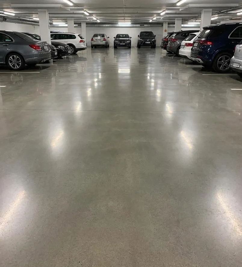 Полиуретан-цементный пол выдерживает морозы, реагенты и постоянные нагрузки от колёс.