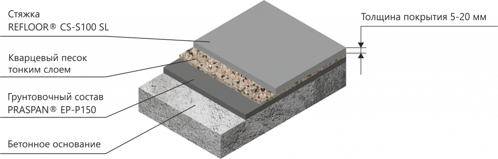 REFLOOR® CS-S100 SL применяется в качестве высокопрочного ровнителя в системах полимерных промышленных покрытий Praspan® и Refloor®. Предназначен для устройства самонивелирующихся износостойких покрытий пола, устойчивых к высоким статическим и механическим нагрузкам на таких объектах, как: