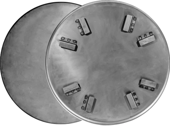 Особенности затирочных дисков Linolit ® 940.8.4 С: установка креплений на затирочные диски осуществляется с использованием аппарата точечной сварки для обеспечения высокой надежности крепежа.