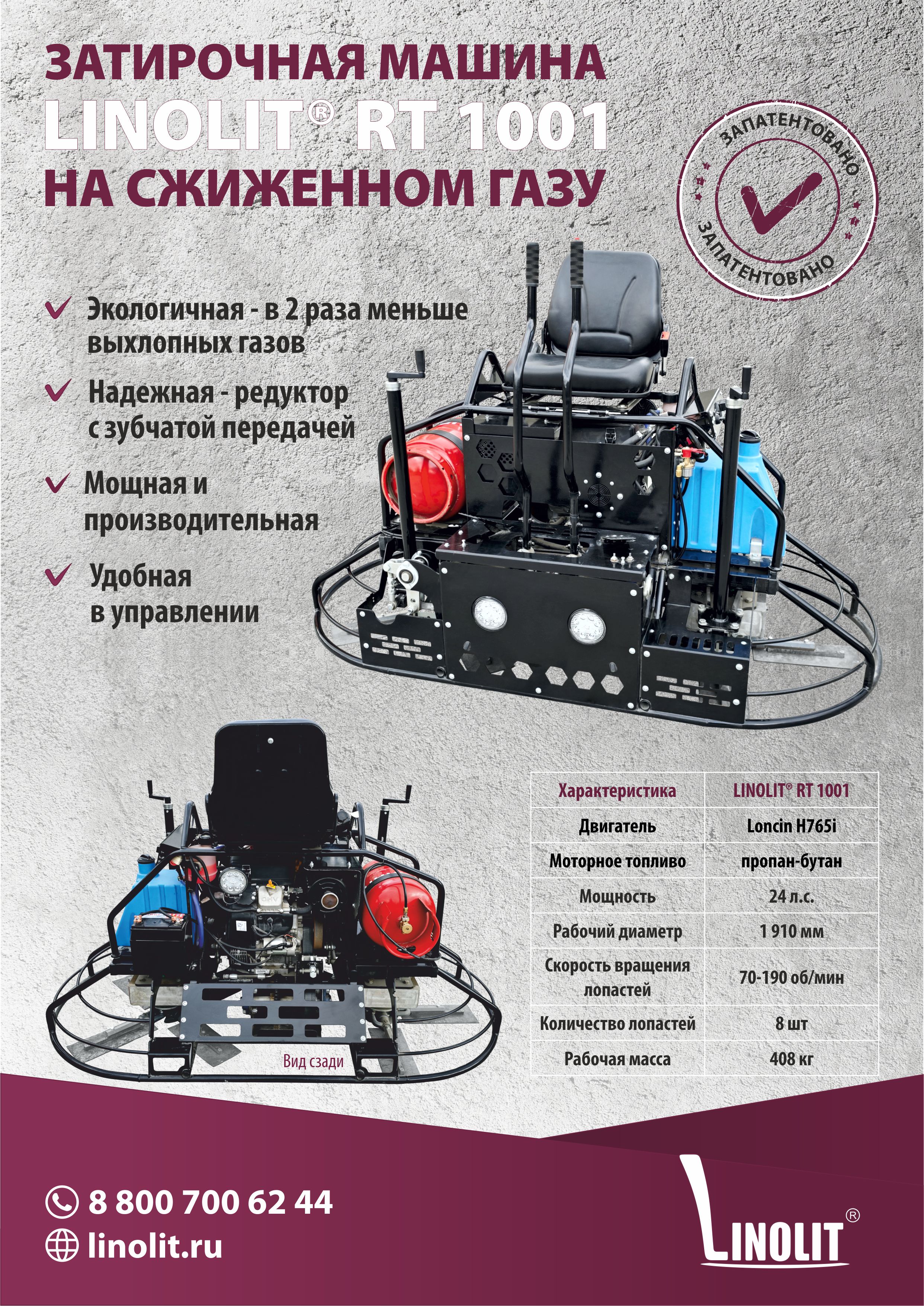 Новая двухроторная затирочная машина Linolit® RT 1001 — это не просто инструмент, а результат запатентованной технологии, которая делает её уникальной на российском рынке. Эта машина, работающая на сжиженном газе (пропан-бутан), была разработана с акцентом на удовлетворение потребностей профессиональных подрядчиков, обеспечивая высокую производительность и экологичность при выполнении работ на больших площадях.