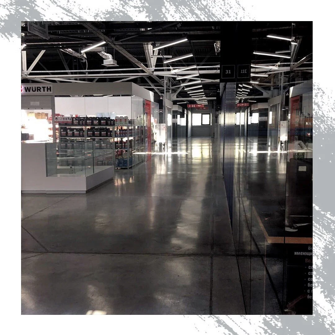 Упрочнение минерального наливного пола в автоцентре AVTODOM